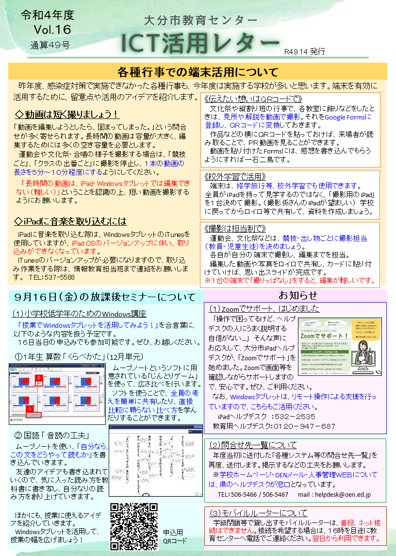 ICT活用に関する様々な情報を発信しているレターをアップしています。