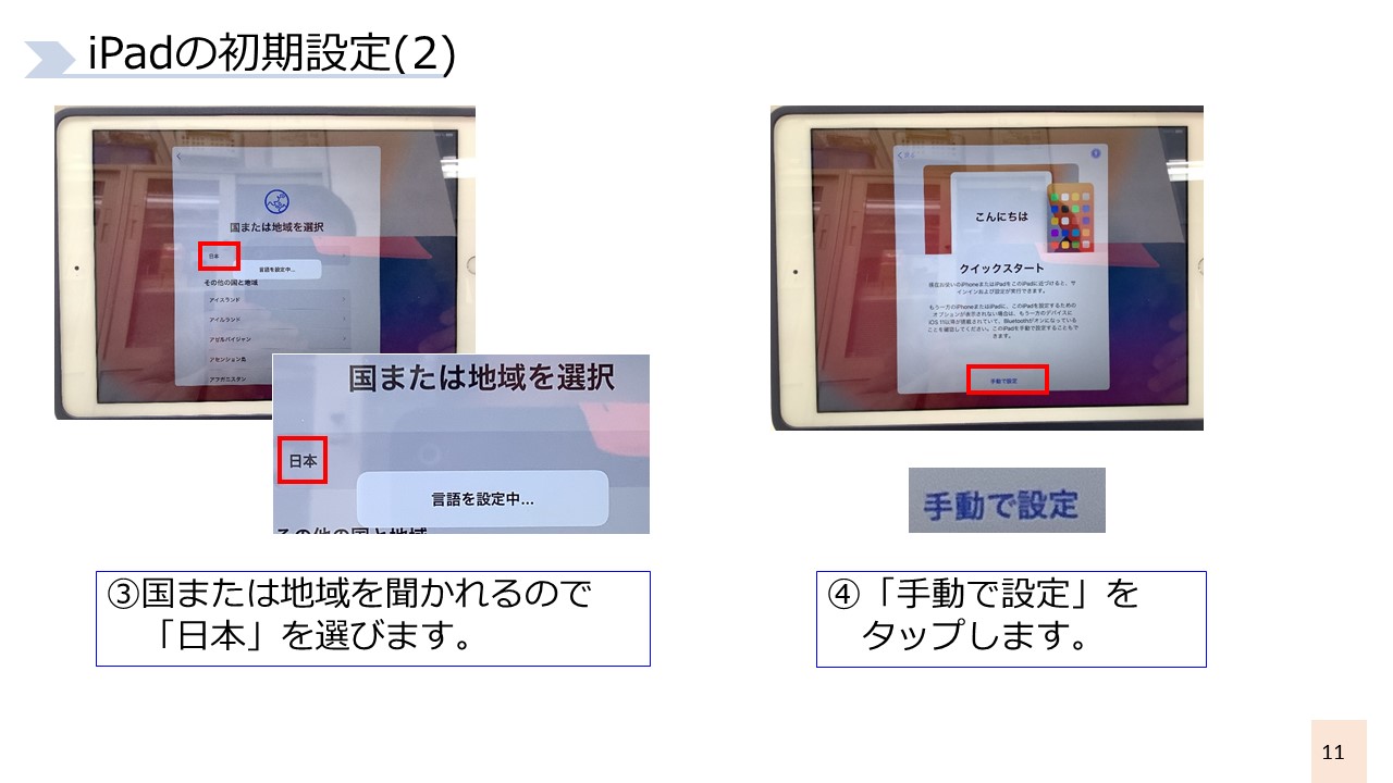 iPadの初期化後、卒業生が初期設定まで終えておくと、新年度に、新小3・中1がスムーズに使い始めることができます。